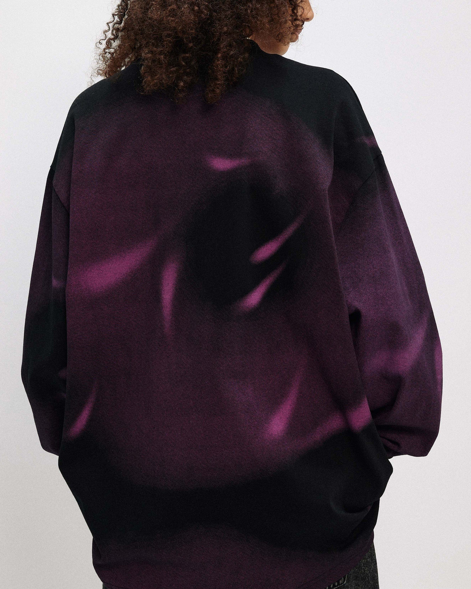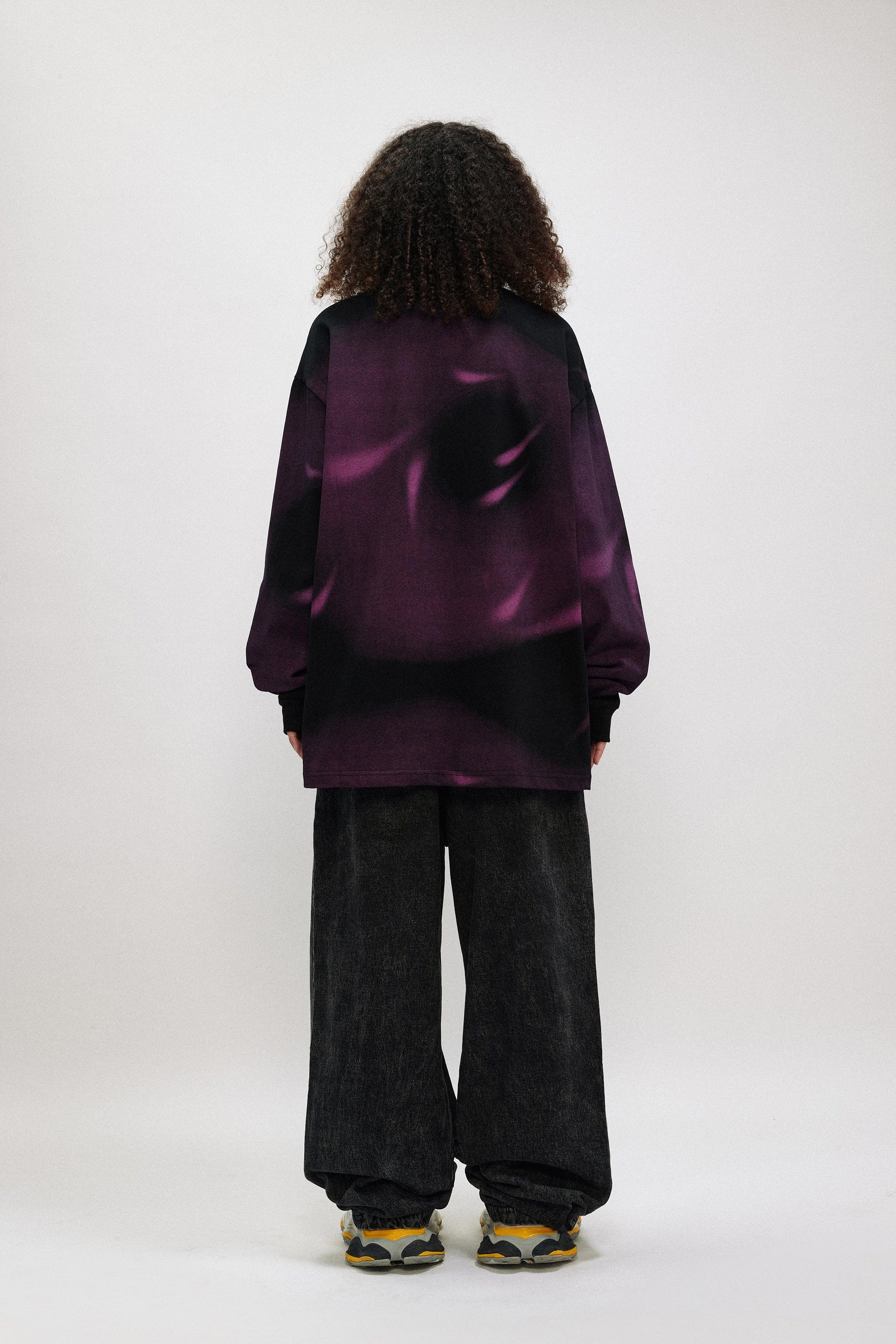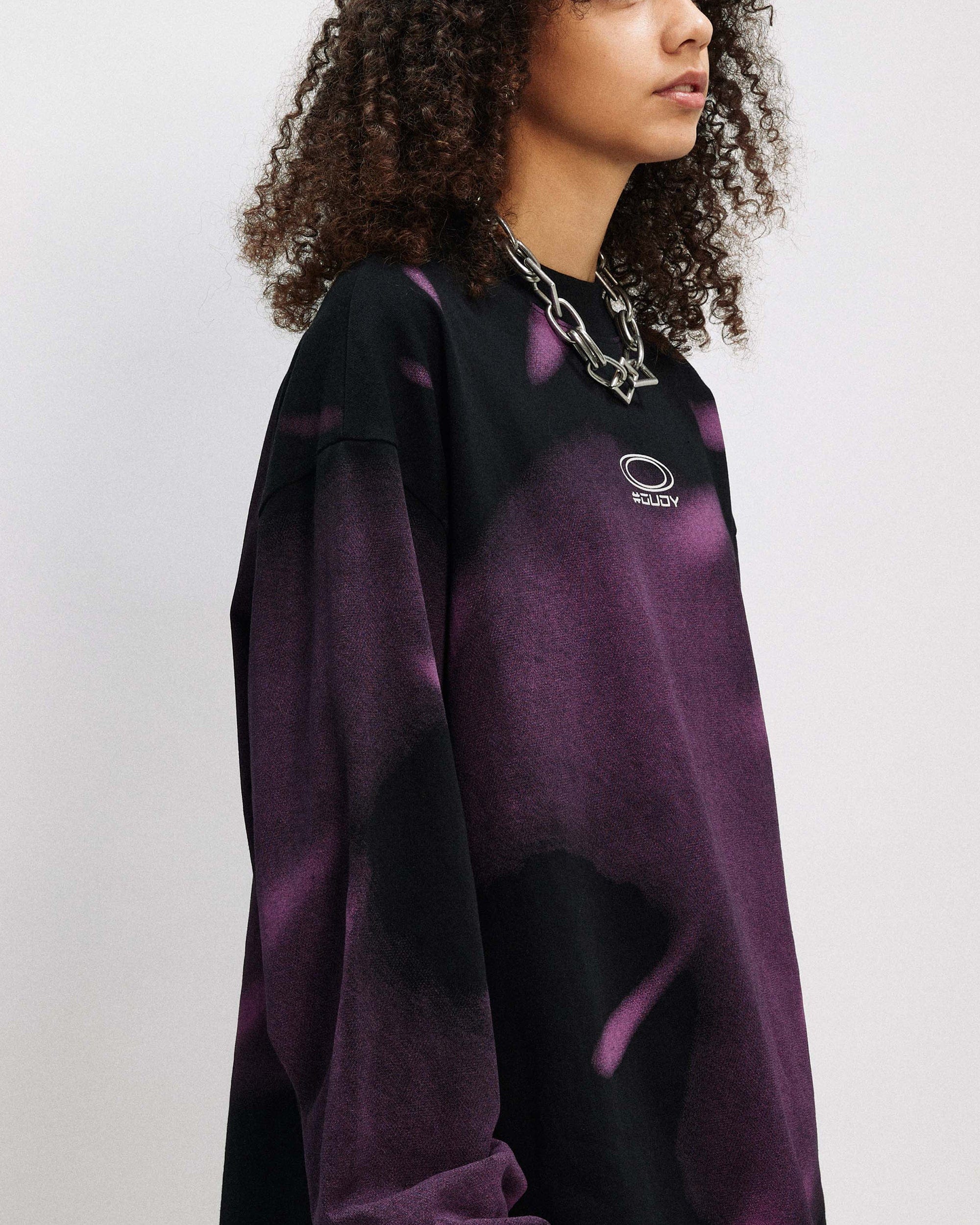 The Midnight Storm LOGO L/S Tee perfectly merges avant-garde aesthetics with exceptional craftsmanship. Featuring an all-over print that captures the essence of a midnight storm, this tee is both bold and stylish. The chest area showcases a prominent logo print, adding a distinct touch to the overall design. The classic crew neck complements the slightly oversized fit, making it a comfortable and fashionable choice for any wardrobe.