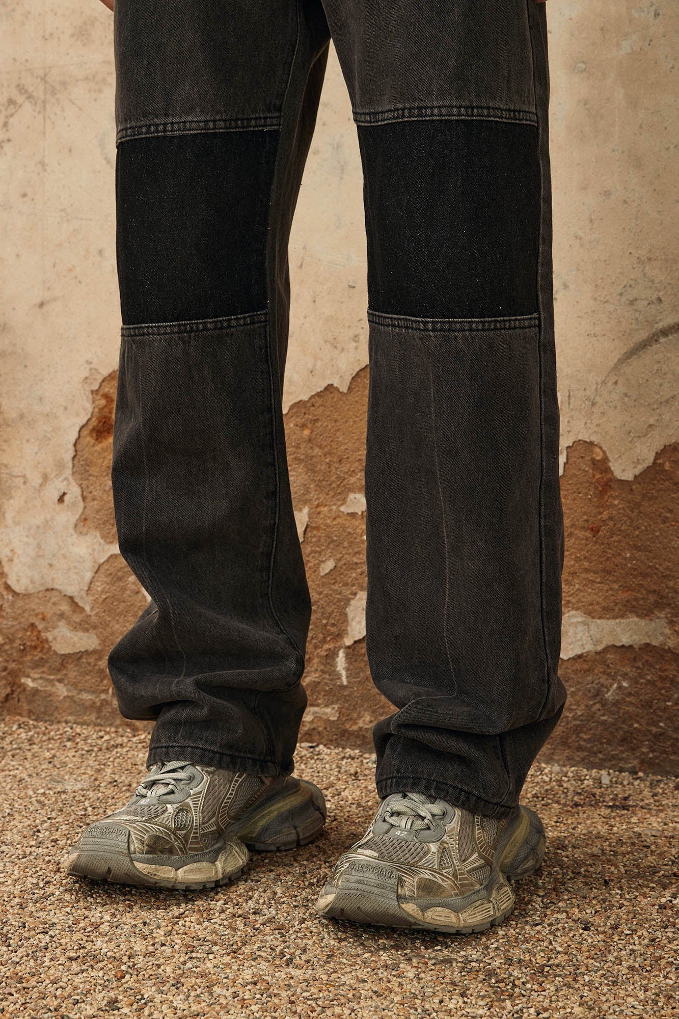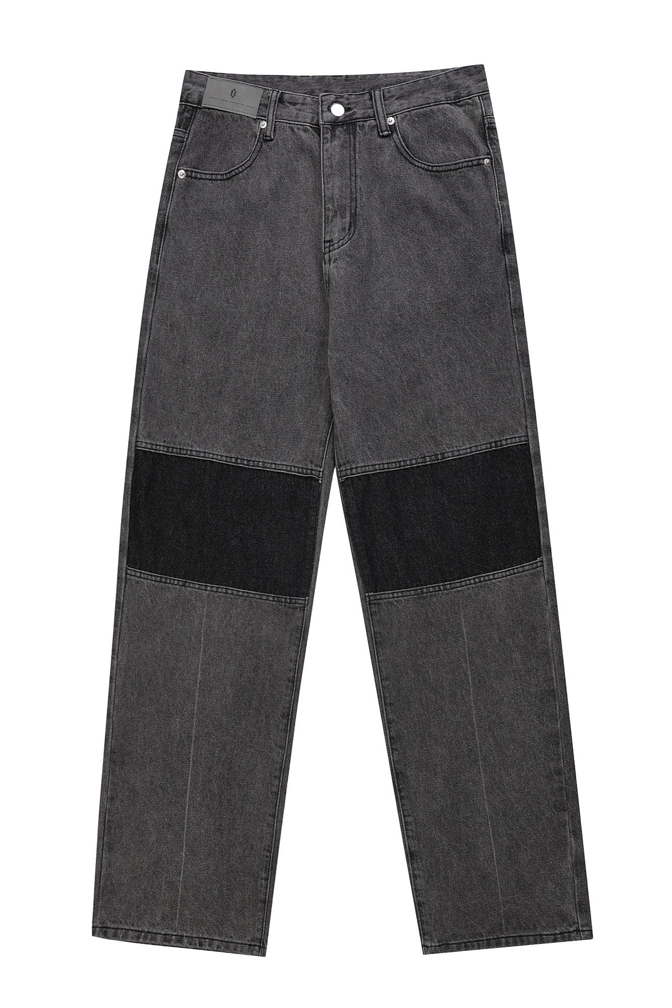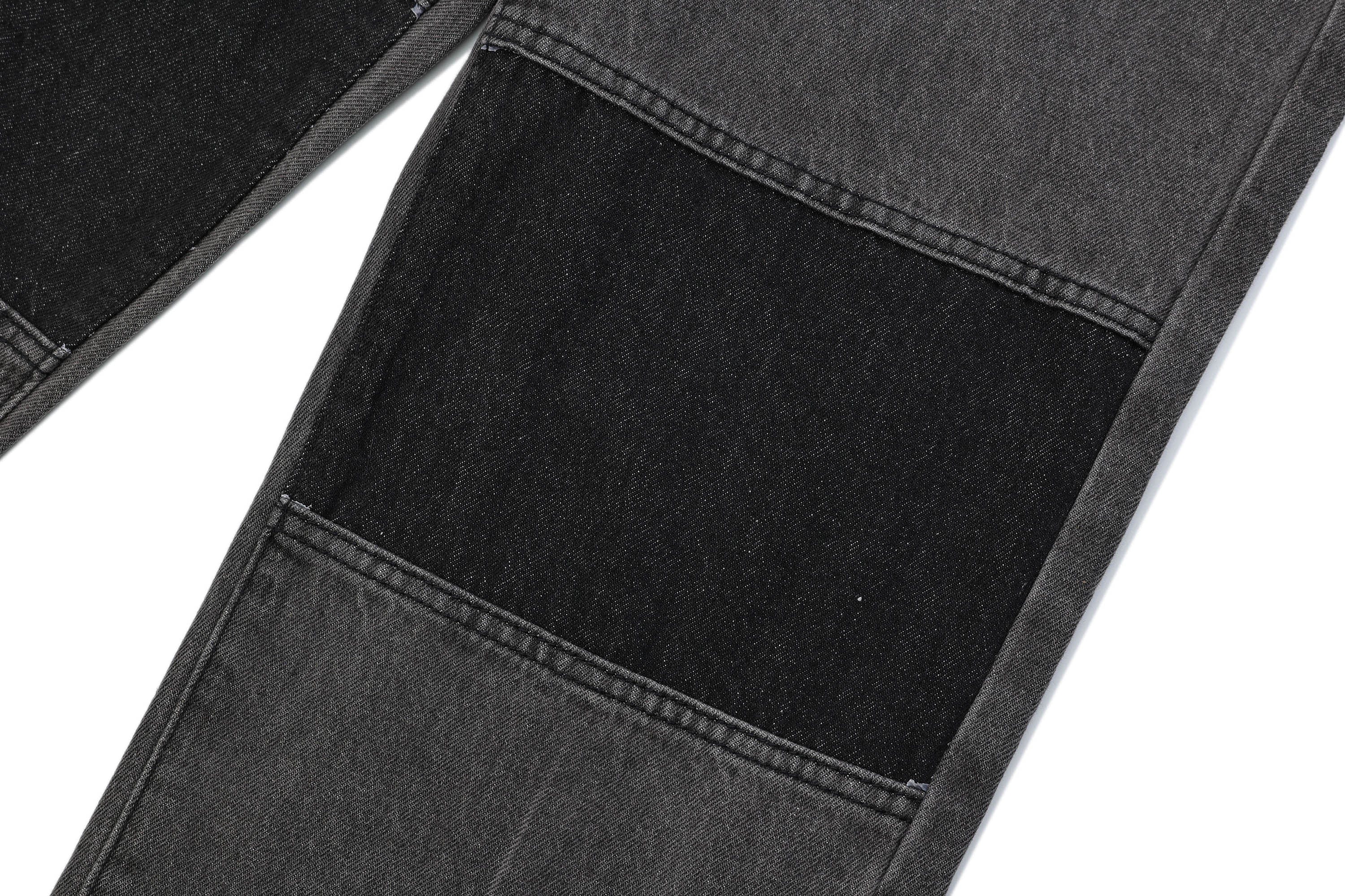 The Spliced Knees Straight-Leg Jeans expertly combine street style with refined craftsmanship. These jeans feature a bold design with contrasting rectangular fabric panels spliced at the knees, adding a unique visual element that sets them apart. The classic straight-leg silhouette offers a timeless fit, while the slightly oversized cut provides a relaxed and comfortable feel. Crafted from premium fabric, these jeans are both durable and stylish, making them a versatile addition to any streetwear collection.