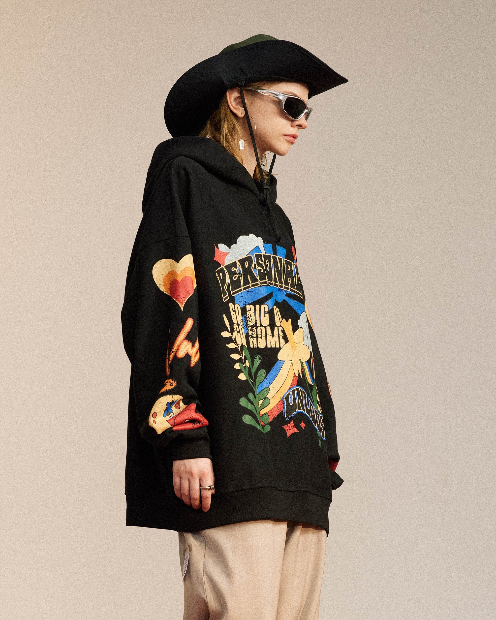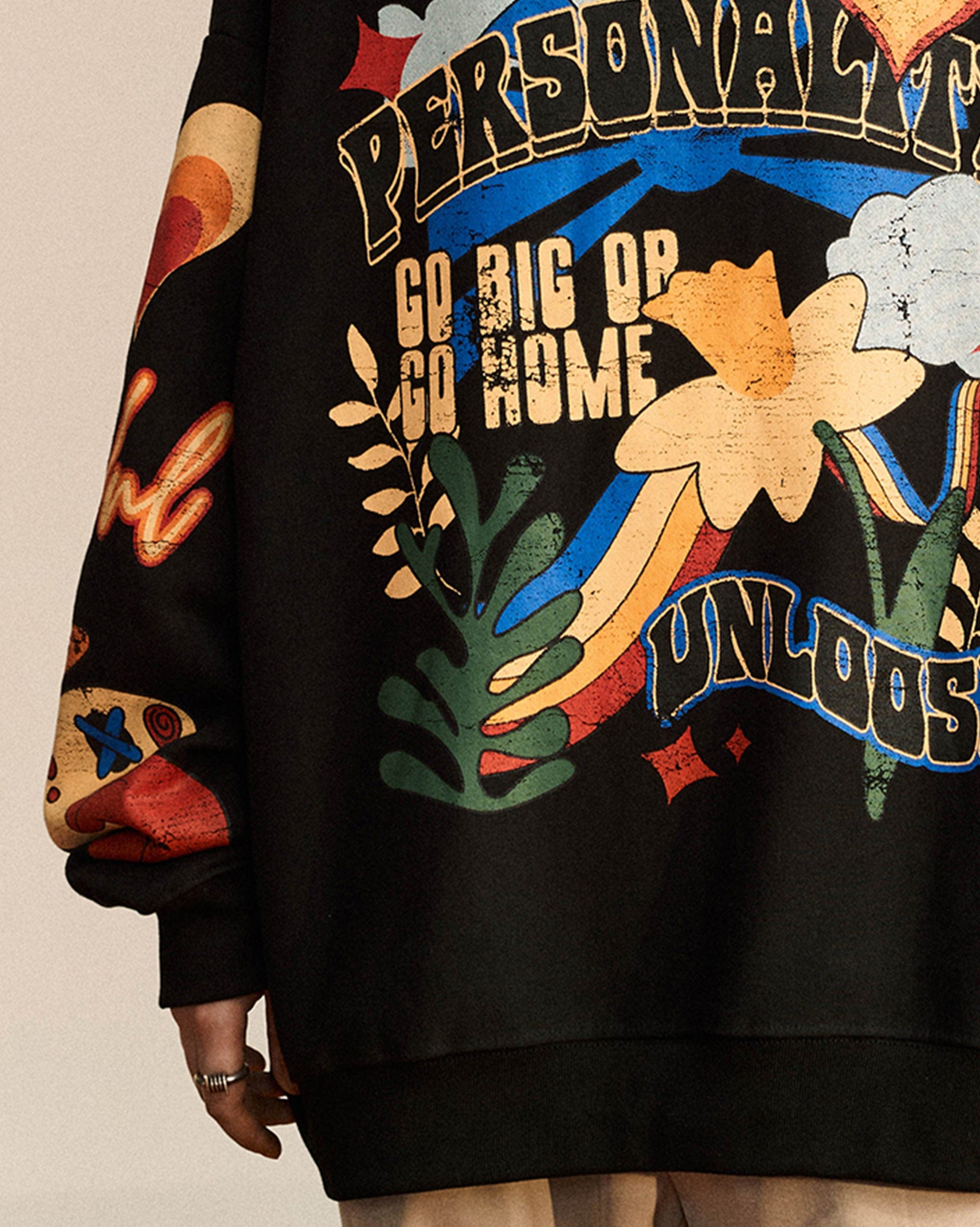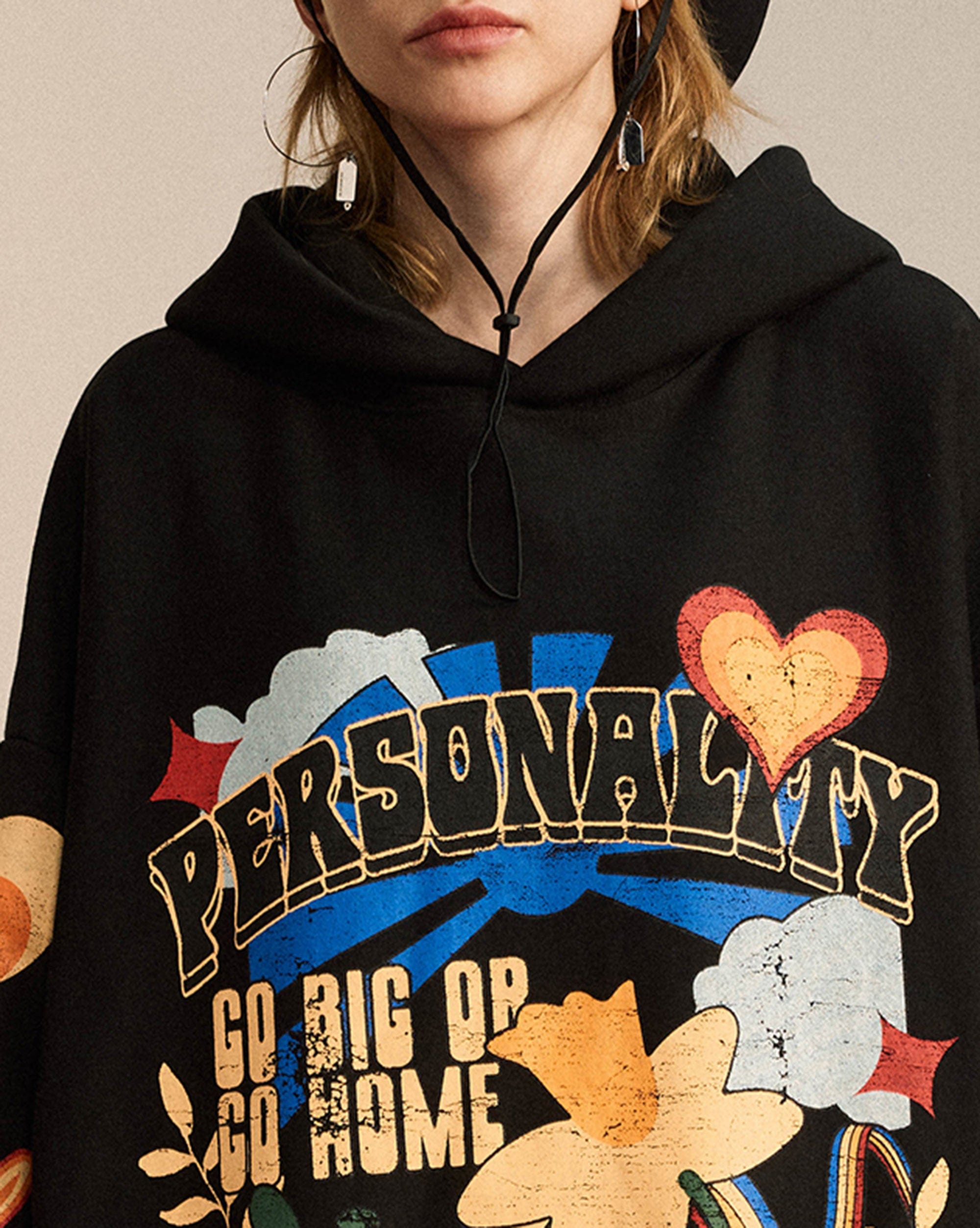 The Color Dopamine Hoodie is a vibrant explosion of creativity, designed to elevate your wardrobe with its bold and captivating artwork. Featuring a colorful forest-themed graphic on the front, it immerses you in nature’s lively hues, while the arms showcase a playful, colorful clown graphic for an added dose of whimsy. Crafted with premium fabric for comfort, this hoodie offers a slightly oversized fit, blending style and freedom of movement effortlessly.
