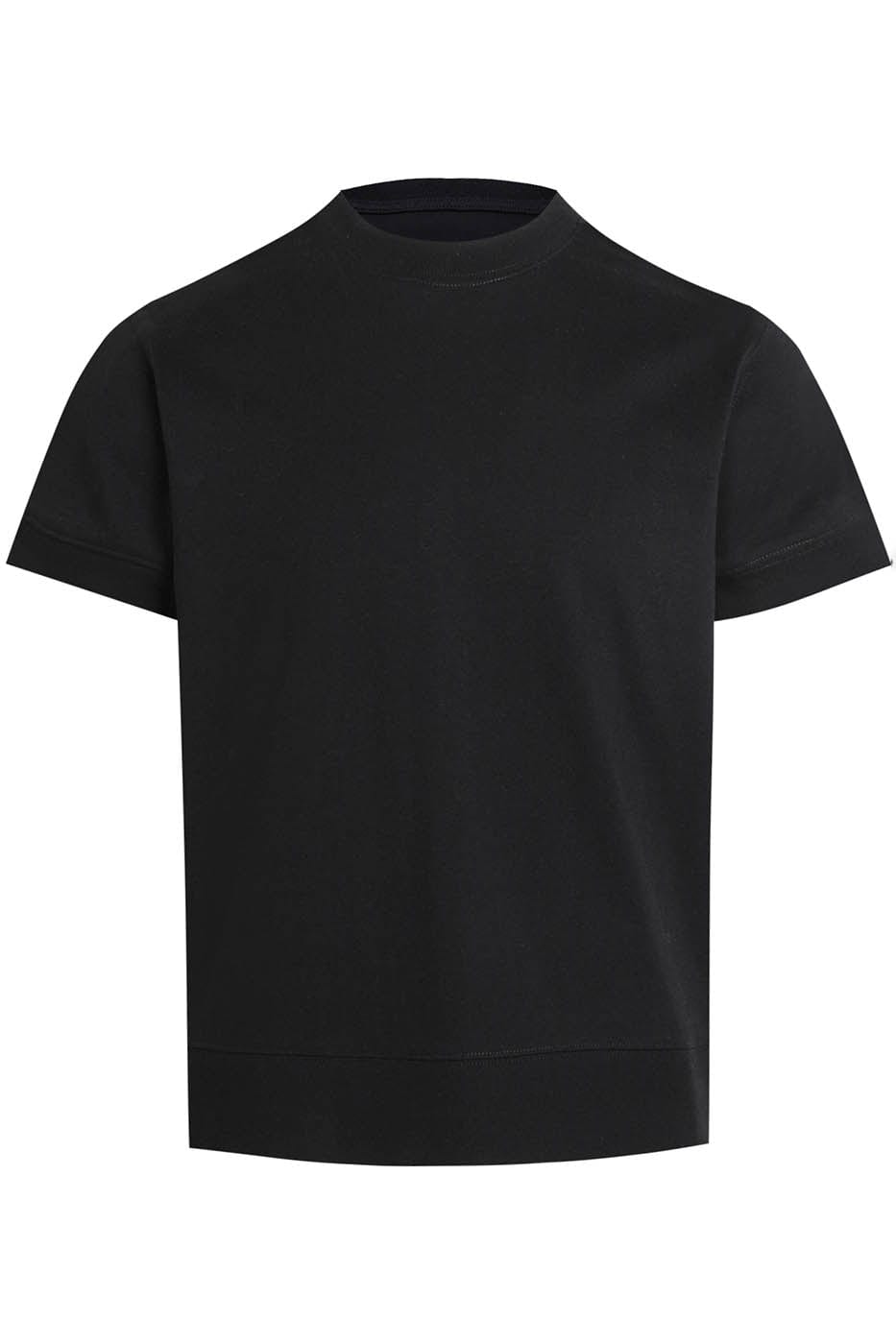 The Classic Stitch Leather-Tag Heavyweight T-Shirt is the quintessence of minimalism fused with timeless style. The T-shirt's design is intentionally straightforward, embodying a foundational piece that serves a variety of ensemble needs. Crafted with a cropped and form-flattering cut, it supports a sleek profile. The design features a wide ribbed hem that underscores its solid structure, while the ribbed cuffs are subtly tapered to accentuate the arm's contours. A standout detail is the custom brand leather tag stitched at the back of the neck, adding a touch of bespoke elegance. This T-shirt is constructed from premium 100% cotton fabric, selected for its heavy weight and lasting quality. The slim-fit silhouette ensures a tailored look that's versatile enough to become a staple in any discerning wardrobe.